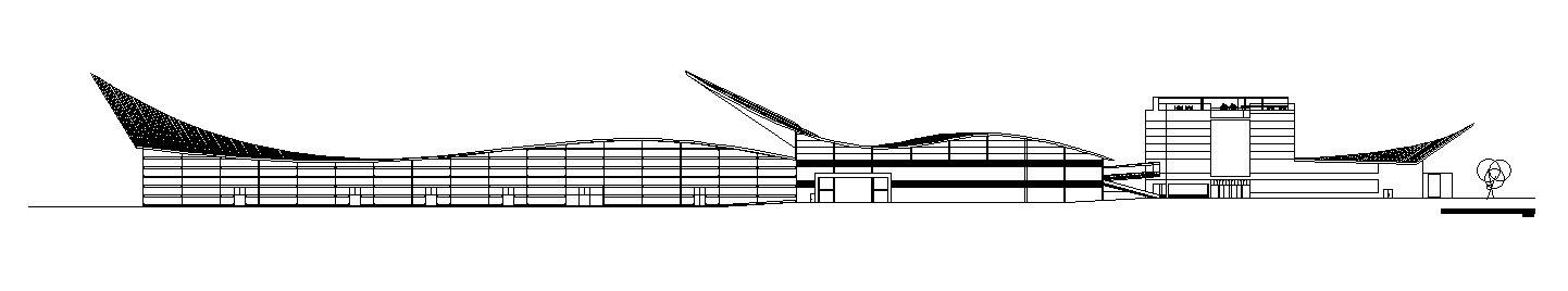 The front elevation view of the airport is given in this AutoCAD drawing model. Download now.