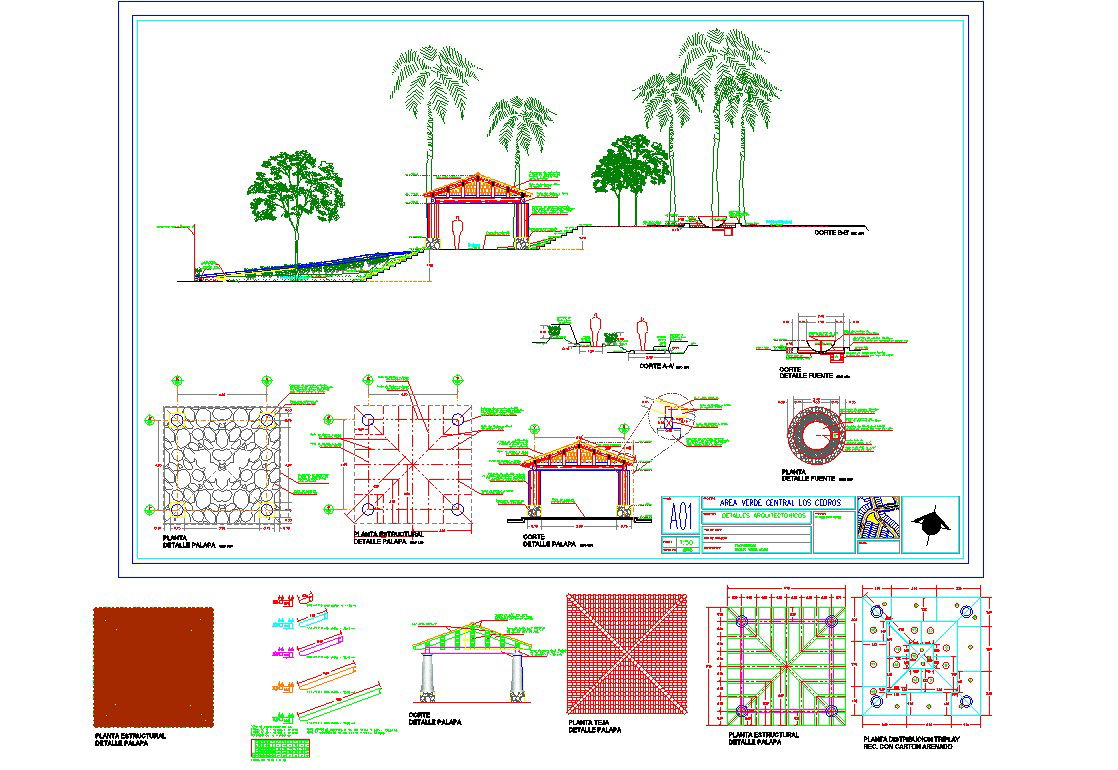 Palapa Tropical Mexico Wood Cabin Roof Detail in autocad dwg files.