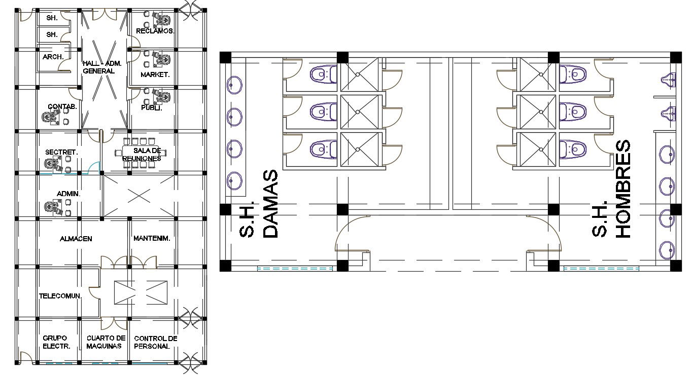 Commercial building detail plan cad drawing is given in this cad file. There is a 2d toilet and an office plan is available. There is beam and column details are available. For more 3d or 2d cad drawings visit our website cadbull.com. Download this 2d cad file now.