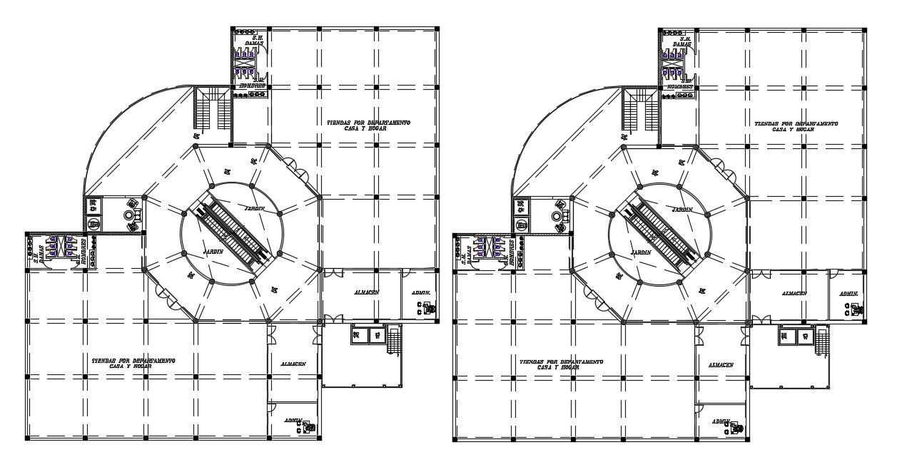 Commercial building detail drawing is given in this cad file. There is a 2d shopping center cad drawing is available. In this cad file, there is column and beam details are available. Download this 2d cad file now.
