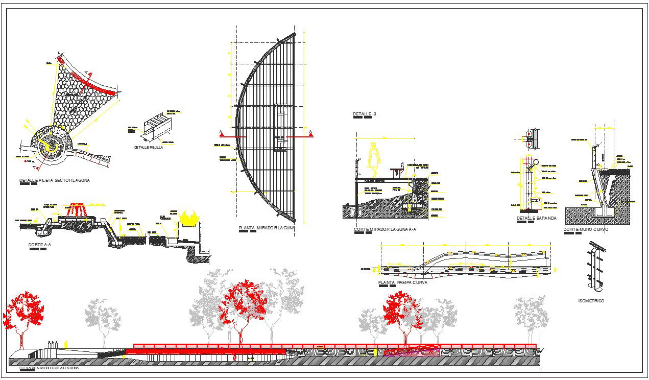 Outdoor garden furniture design and detail in autocad dwg files. Include elevations, plan, and section.