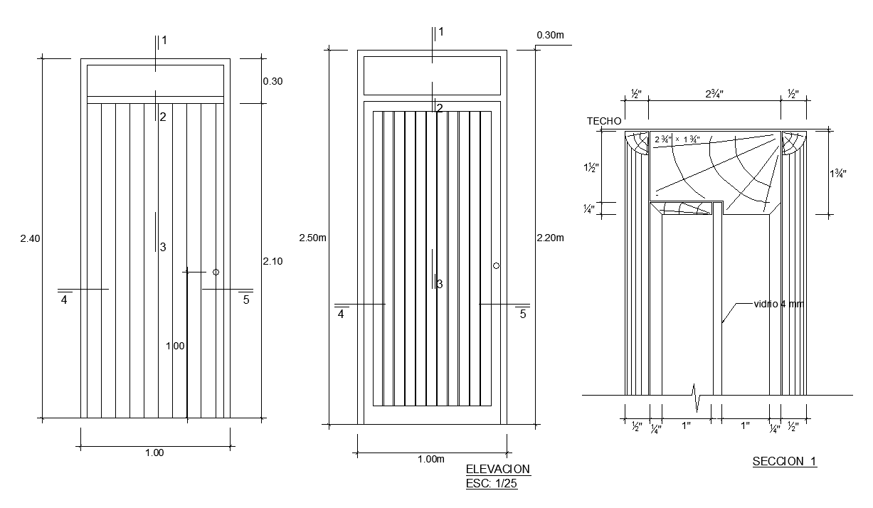 2d door detail cad drawing is given in this cad file. There is a 2d elevation and a section is available. In this cad drawing, there is door measurements are also available. For more 3d or 2d doors, design visits our website cadbull.com. Download this 2d cad file now.