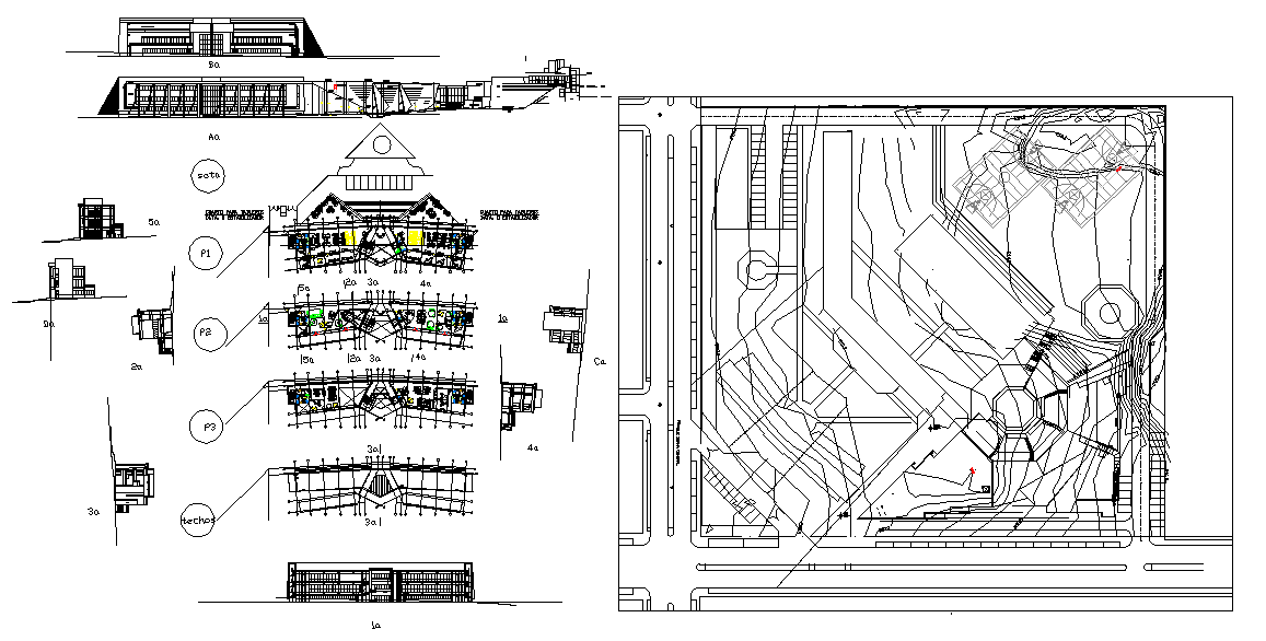 Hotel & Restaurant detail in DWG File, Elevation design, Section detail, Plan detail, key plan lay-out design.