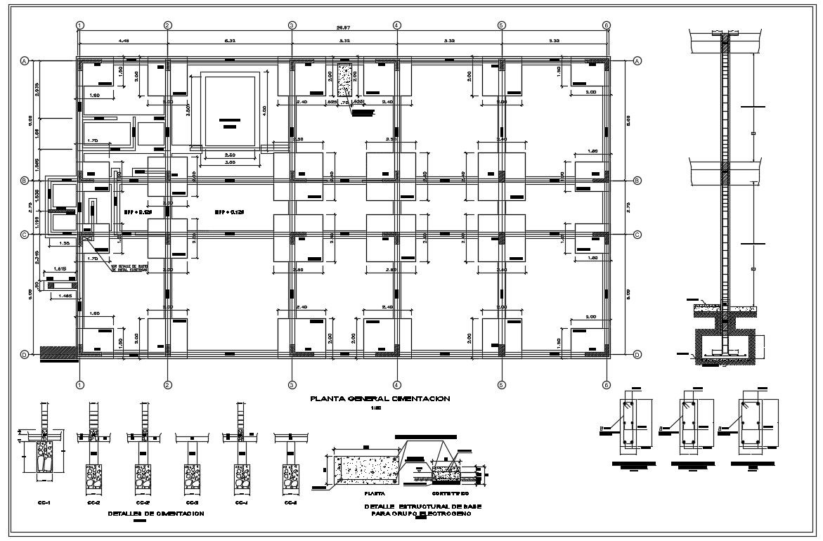 Column detail cad drawing is given in this cad file. There is a 2d footing detail plan is available. There are centerline details are also available. Column bar details are also available. Download this 2d cad file now.