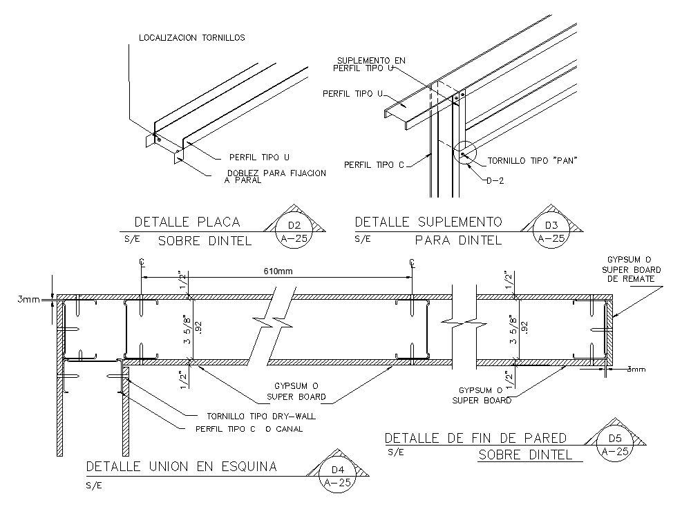 End of the wall on the lintel cad drawing is given in this cad file. Download this 2d cad file now.