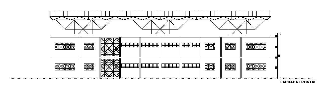 Football ground front facade cad drawing is given in this cad file. Download this 2d cad file now.