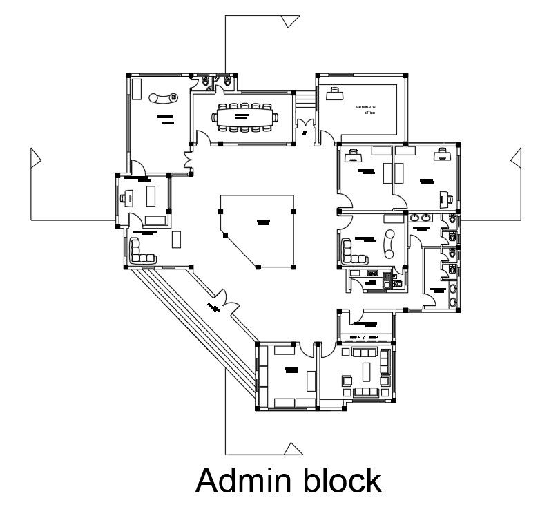 The administration office layout plan AutoCAD drawing which consist security control room, record room, vice principle office, clerk office, accounts office, meeting room, director office, personal assistant office, reception and waiting area with all dimension and description detail in dwg file. Thank you for downloading the Autocad drawing file and other CAD program files.