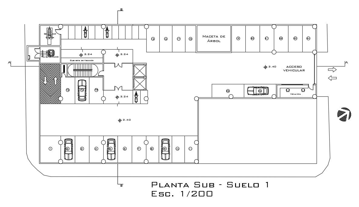 The commercial building basement plan AutoCAD drawing that shows car parking for 20 unit capacity, 2 wheeler parking, security room box, elevators, staircase and ramp way in dwg file. Thank you for downloading the Autocad drawing file and other CAD program files.