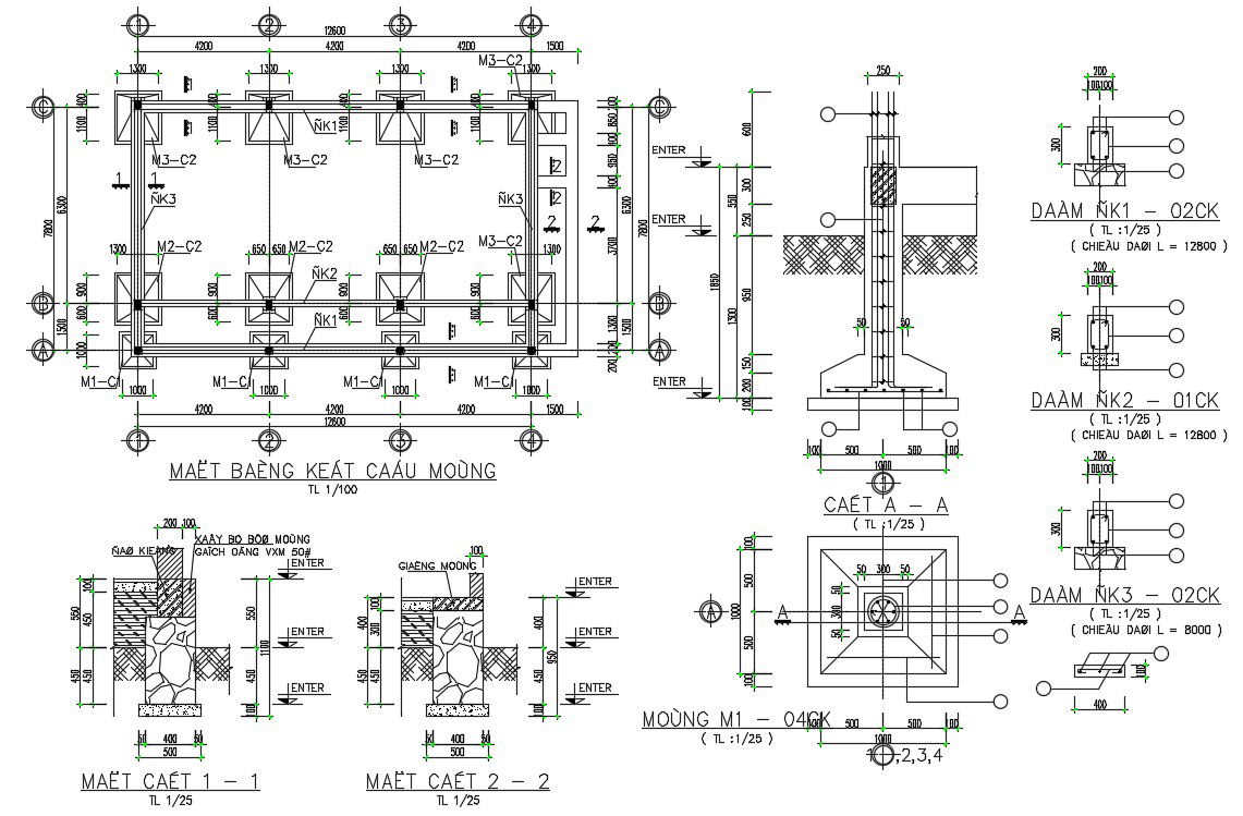 House Foundation Plan And Column Section CAD Drawing Download DWG File