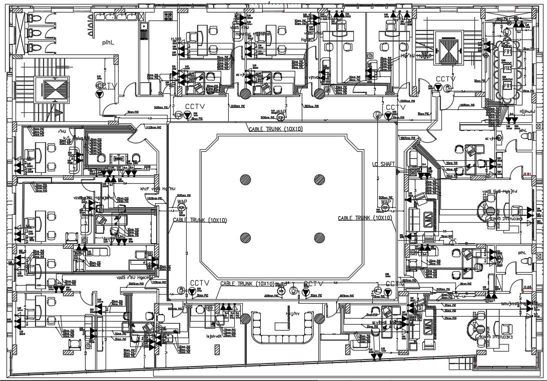 The office interior furniture layout plan AutoCAD drawing which consist multiple office canine with work desk, toilet, waiting area, pantry, meeting room, both side staircase and elevators detail. also has on the center open space detail in dwg file. Thank you for downloading the AutoCAD drawing file and other CAD program files from our website.