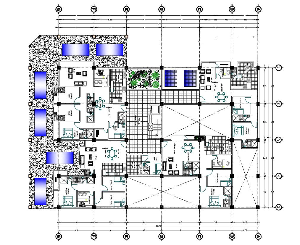 The luxuries apartment layout plan AutoCAD drawing which consist 3 BHK and 2 BHK with furniture design also has column layout with center line and dimension detail in dwg file. there are 4 residence house on apartment cluster plan. Thank you for downloading world largest AutoCAD library drawing dwg file and other CAD program files from cadbull website.