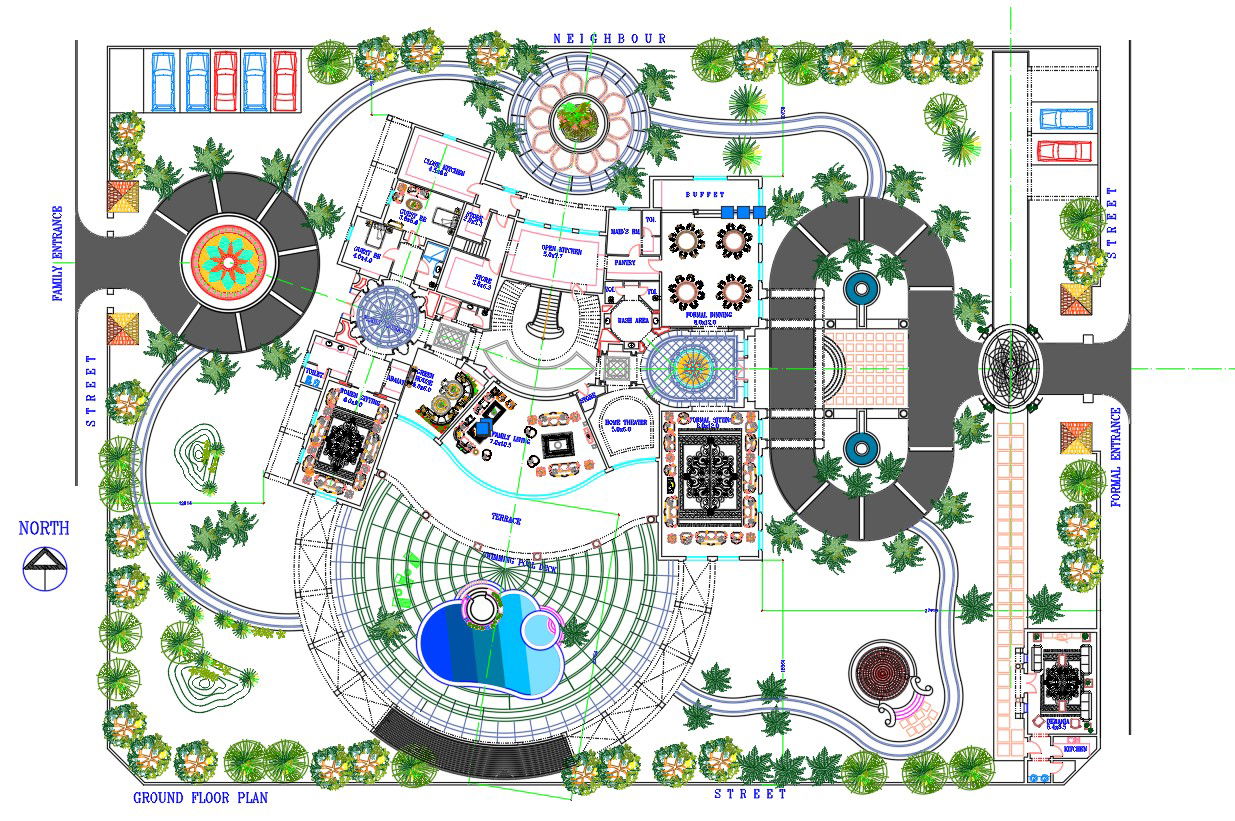 The hotel architecture layout plan AutoCAD drawing which consist dining area, modular open kitchen, guest room, formal dining area, home theater, living lounge, pergola, swimming pool, and dewania detail in dwg file. Thank you for downloading the AutoCAD drawing file and other CAD program files from our website.