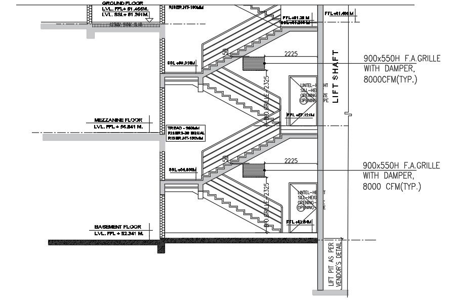 Staircase Sectional Elevation Construction Drawing Download DWG File