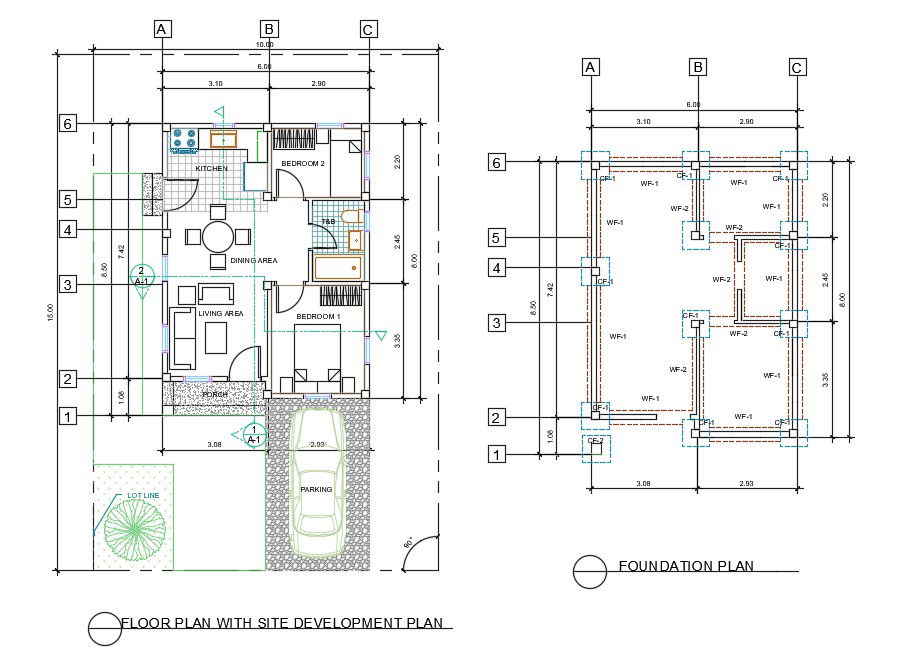 15MX10M House Plan DWG File 2 BHK with Detailed AutoCAD Layout