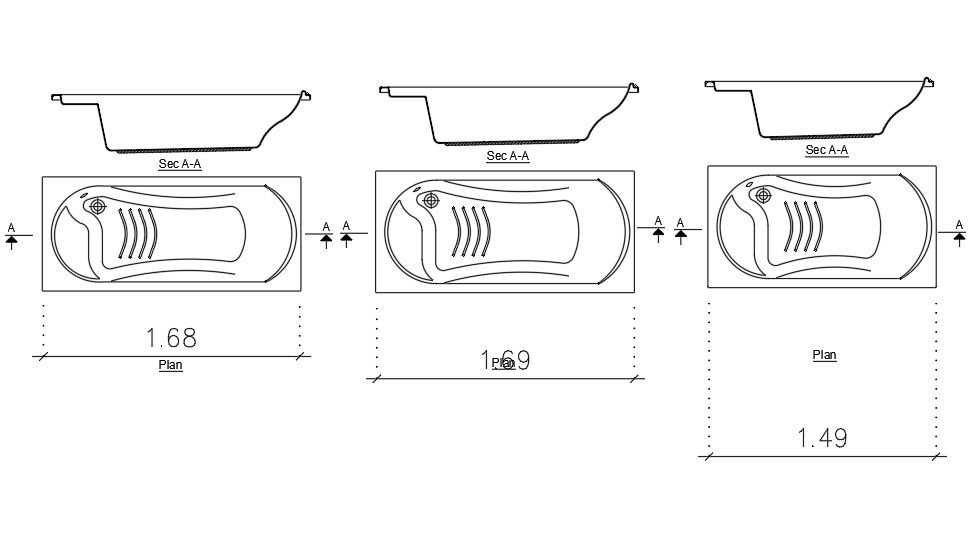 The bathroom tub sanitary ware cad blocks drawing shows front elevation design and top view detail. the drain is an installation for ventilated maintain with 3 different size of bath tub in dwg file. Thank you for downloading the AutoCAD drawing file and other CAD program files from our website.