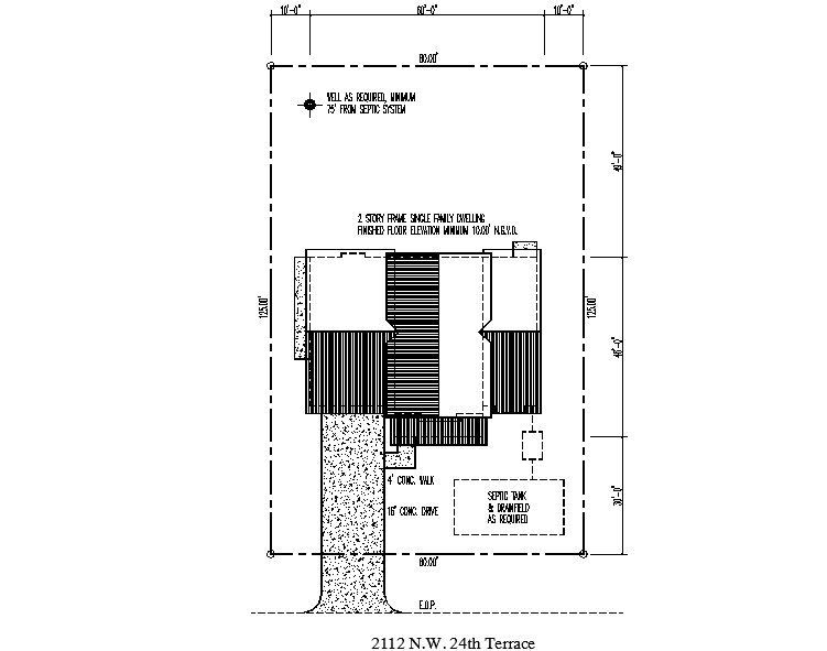 septic tank & drainfield as required, 16' conc. drive, 2 story frame single family detailing finished floor elevation minimum 10.00' n.g.v.d.Autocad plan drawing House DWG.