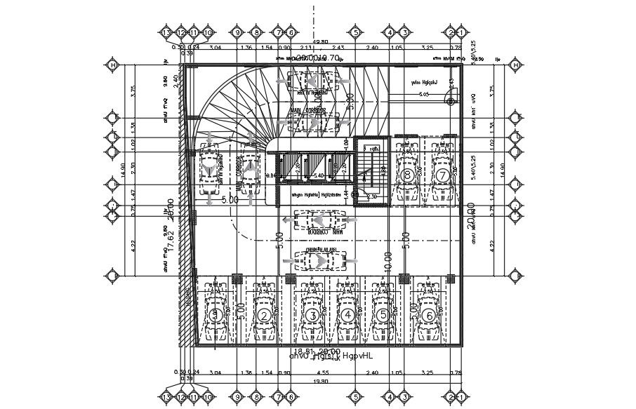 The corporate building basement parking layout plan CAD drawing includes parking lot, ramp way, staircase with lift elevator, and center line plan with dimension detail. Load factors are applied to the loads, and a member is selected that will have enough strength to resist the factored loads in dwg file. Thank you for downloading the AutoCAD drawing file and other CAD program files from our website.