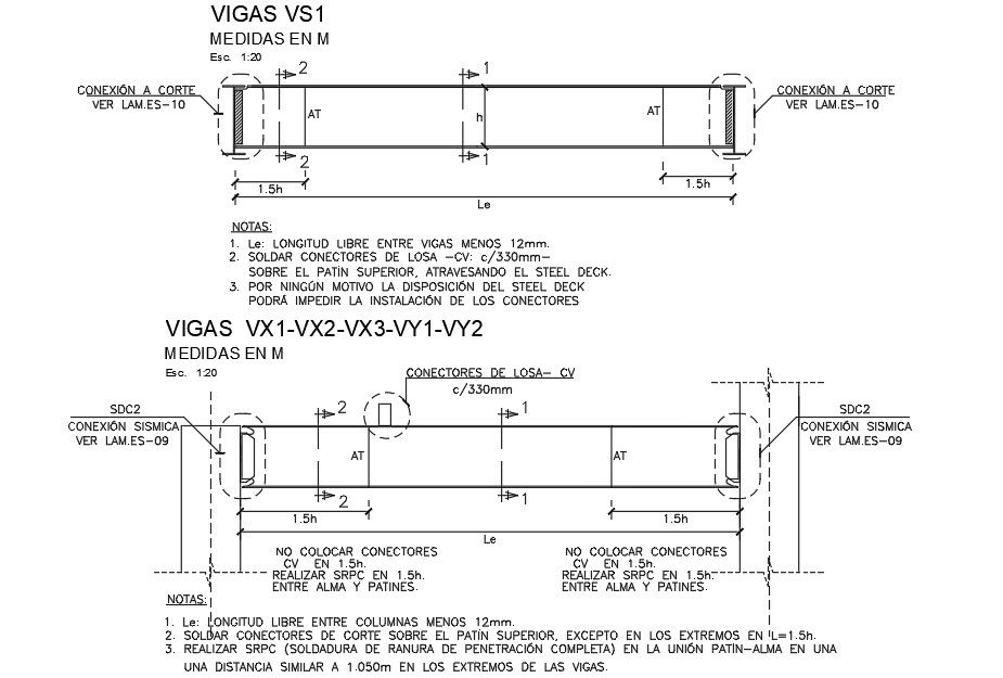 the free length between beams minus 12mm. the weld slab connectors -cv: c / 330mm- on the upper skate, through the steel deck for no reason will the arrangement of the steel deck prevent the installation of the connectors, perform srpc (complete penetration slot welding) in the skid-soul joint at a distance similar to 1,050m at the ends of the beams. Thank you for downloading the AutoCAD drawing file and other CAD program files from our website.