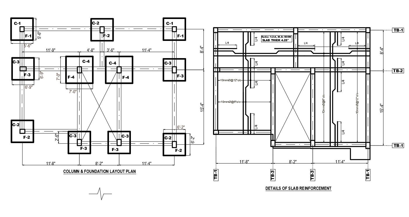 Column Foundation And Reinforcement Slab Plan Drawing DWG File