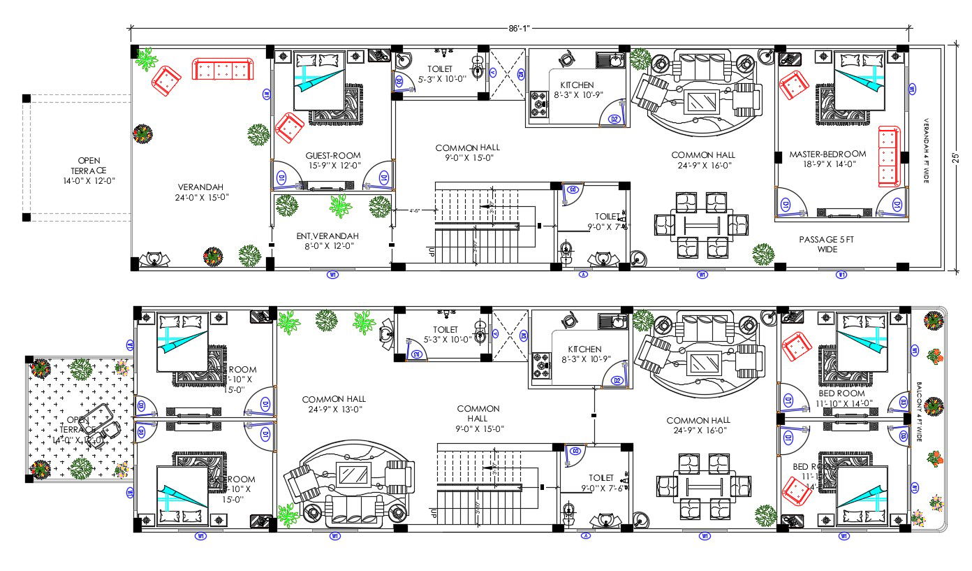 25'X86' House Architecture Plan AutoCAD Drawing Download DWG File