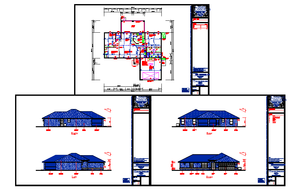 Residential house construction detail in Autocad file. Elevation detail, Section detail, Plan Detail,Roof detail, LOAD BEARING WALL,, Living Room, Bedroom, Porch, TOP OF TIE-BEAM, TOP OF TIE-BEAM,