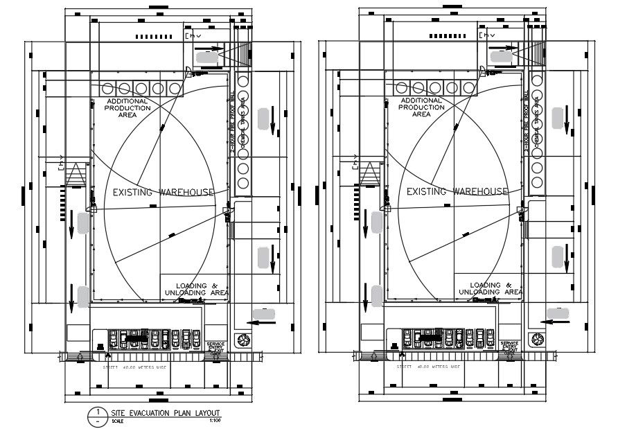 The ware house floor plan CAD drawing shows additional production area, exiting warehouse, loading and unloading area detail. there is total 45X75 meter plot size with dimension and concrete resulting from normal service loads are within specified limits detail in dwg file. Thank you so much for downloading the DWG file from our website.