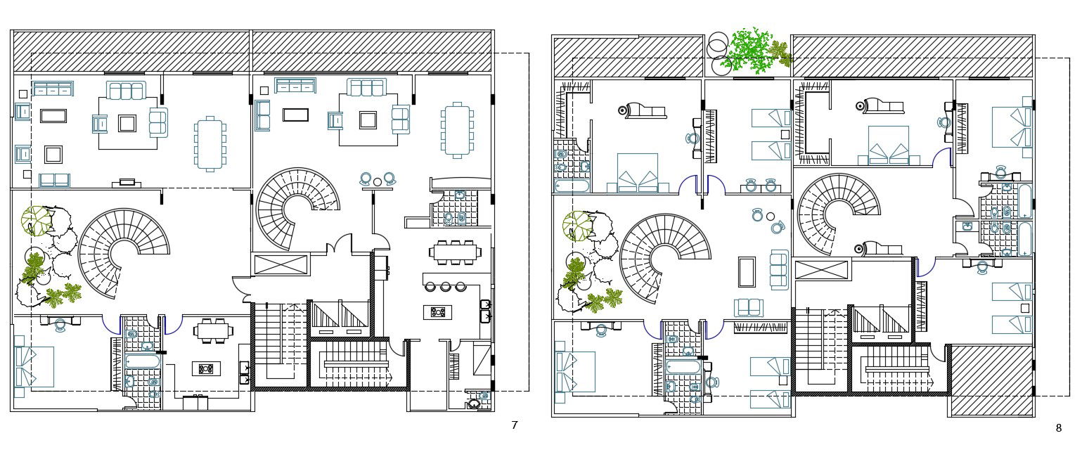 The residence house apartment plan cad drawing shows a double-height floor plan with all furniture layout detail which consists 2 unit house includes 3 bedrooms and 4 bedrooms detail in dwg file. Thank you for downloading the AutoCAD drawing file and other CAD program files from our website.