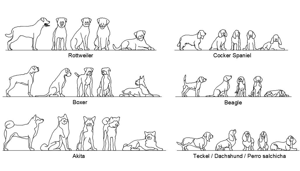 AutoCAD blocks for different breeds of dogs These blocks can be found in the AutoCAD animal clinic block