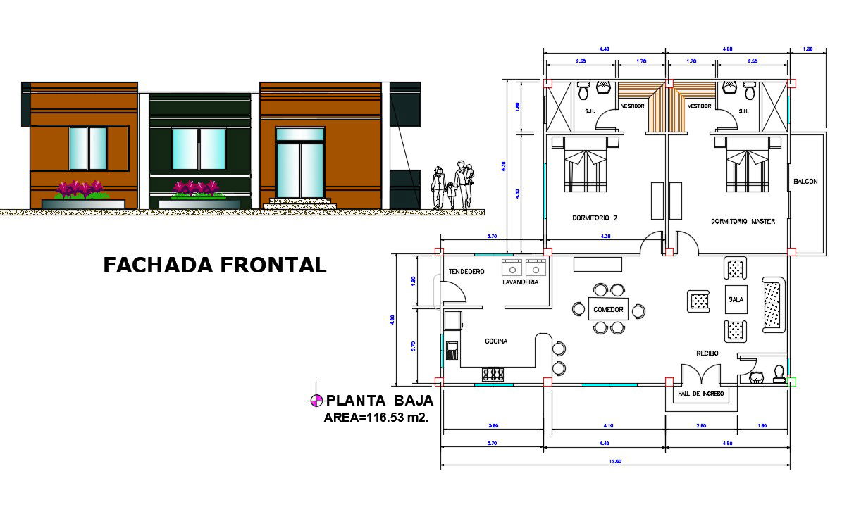 115 SQ Meter House Plan AutoCAD Drawing