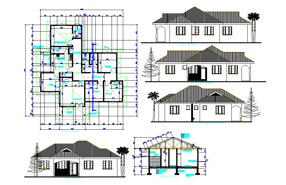 House level plan. The top view plan with elevations are shown in the plan. The top view plan is shown with furnished detailing .All side elevations available in this DWG File. All dimensions are in meter. Thanks for downloading the file and another CAD program from the cadbull.com website.