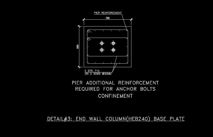 700x600mm footing plan is given in this AutoCAD drawing model. This is given for the base plate. 4 number of the anchor bolts are used. For more details download the AutoCAD files for free from our website.