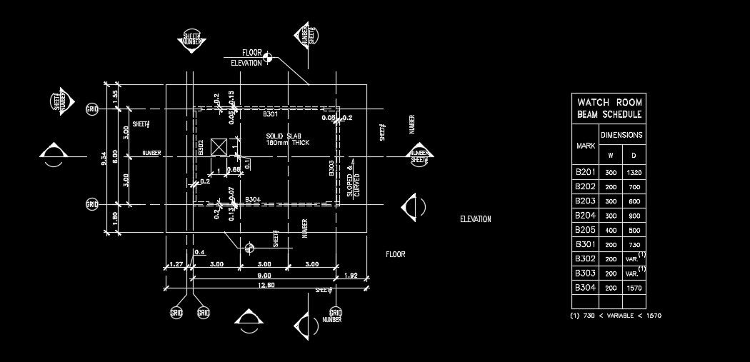 73x19m industrial plan of the watch room beam detail drawing is given in this AutoCAD model. Dimension details are given in the table. For more details download the AutoCAD files for free from our website.