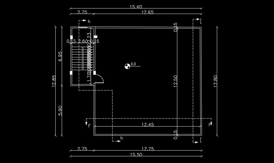 The roof layout of the 15x13m house plan is given in this AutoCAD drawing model. This is G+ 2 home building. The living room, kitchen, master bedroom with attached toilet and balcony, guest room, drawing room, kid’s room with the attached toilet, and common bathroom are available. For more details download the AutoCAD file for free from our website.