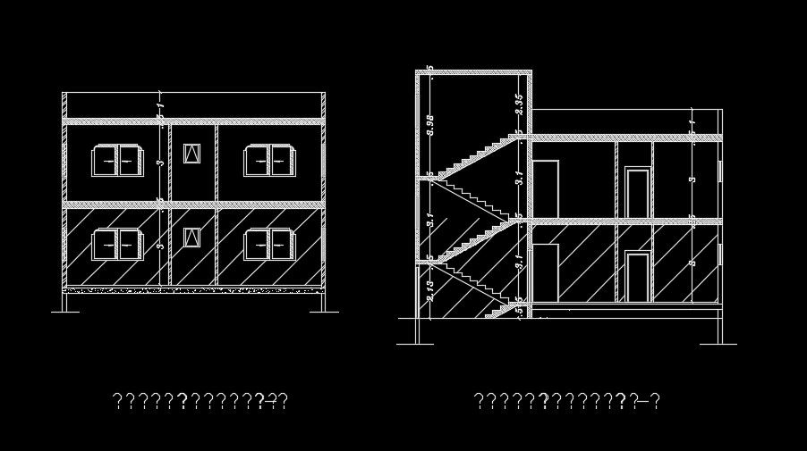 The front and back side section view of the 10x11m house building is given in this AutoCAD drawing model. This is G+ 1 house building. The kitchen, dining area, master bedroom, guest room, kid’s room, living room, and common bathroom are available. The staircase is provided inside a home. For more details download the AutoCAD file for free from our website.