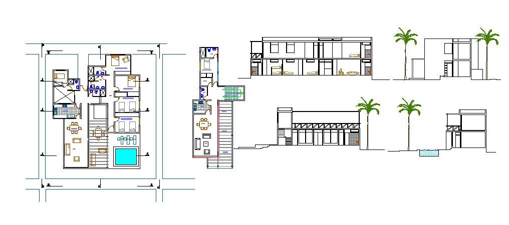 Farm House construction detail drawing in DWG AutoCAD file. This file includes the detail construction drawing of the Farm house with roof detail. Farm house plan shows ground floor and first floor includes 6 bedrooms, living room, dining area, kitchen, toilets and inside staircase. In farm house plan swimming pool is also available. Farm house elevations are shown in file. , Thank you for downloading the AutoCAD drawing file and other CAD program files from our website. Visit CADBULL.COM Site.
