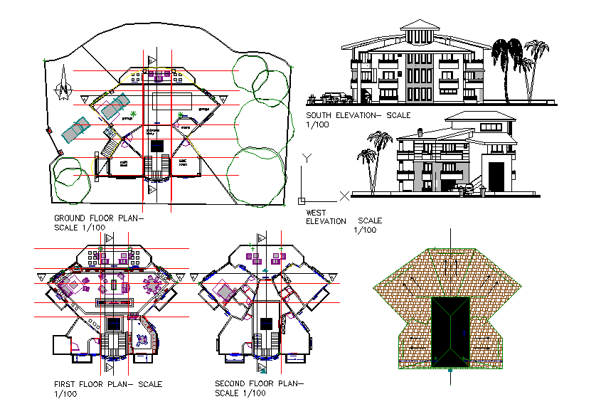 Design of a modern House size 20x18 Meters. It has been designed on a G+2 storey floor. Here it accommodates a spacious 4 bedrooms, kitchen, living area, drawing room, pooja room, storeroom, inside staircase with open terrace. the architecture presenting house ground floor, first floor, and second-floor layout plan with furniture design and dimension detail in dwg file. The roof plan and elevations are available in this file. Thank you for downloading the AutoCAD drawing file and other CAD program files from our website. Visit CADBULL.COM Site.