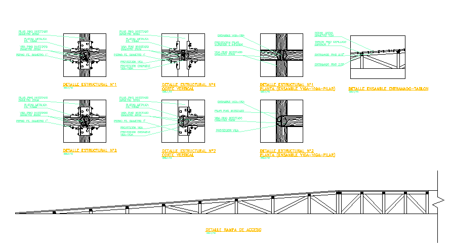 wood framing details dwg file, detail access ramp, structural detail nº2, detailed tabled-assembly assembly,