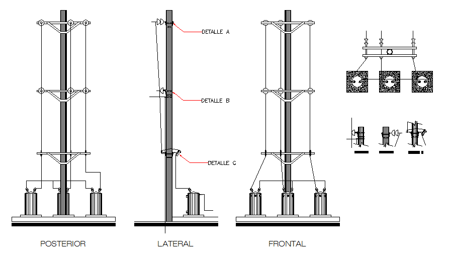 Electrical substation layout & Elevation drawings, Front elevation, LATERAL Detail , POSTERIOR detail, Section detail.