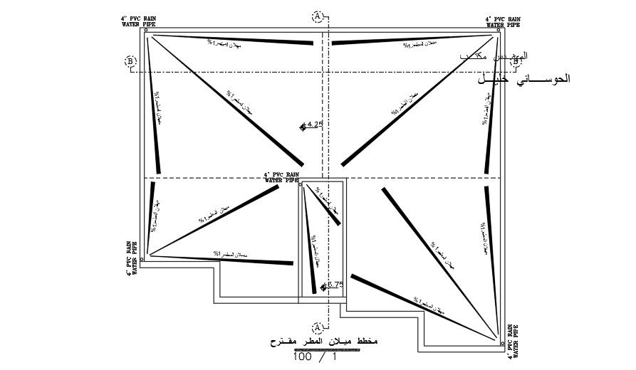 The apartment terrace plan layout shows a 25x18 meter size. The apartment terrace plan layout includes column placement. The apartment terrace plan dimensions are in a meter. The apartment terrace plan shows slopping detail. Thank you for downloading the AutoCAD drawing file and other CAD program files from our website. Visit CADBULL.COM Site.