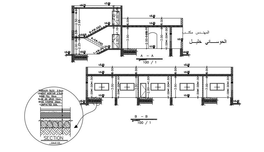 sections Of the house Building AutoCAD files are shown in this drawing file. This is a house section drawing. The sections of the house include window and door sizes and staircase sections with all dimensions. Beam depth is 0.15 Meter. levels are shown in this file. Section of house plan shows detail of ground section detail. Thank you for downloading the AutoCAD drawing file and other CAD program files from our website. Visit CADBULL.COM Site.