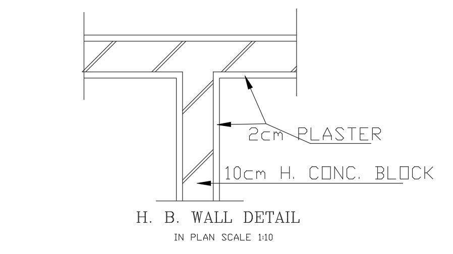 H B wall plan detail cad drawing is given in this cad file. There is a 2d side view and section details are available. H B wall plan shows RCC detail includes 2 cm plaster and 10 cm H. concrete block. For more detail visit our website cadbull.com. Download this 2d cad file now.
