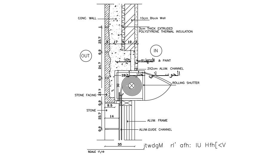 Section Of Steel Rolling Shutter cad drawing is given in this cad file. Section Of Steel Rolling Shutter is a 2d side view and section details are available. Section Of Steel Rolling Shutter shows RCC detail includes concrete wall, 10 cm block wall, 2x2 cm aluminum channel. In this file joinery detail is available. Download this 2d cad file now.