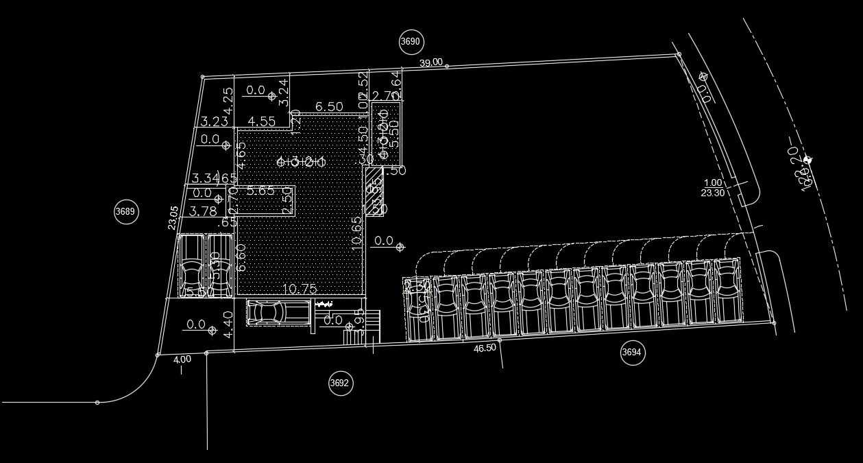 44x23m school building layout is given in this AutoCAD file. Car parking is available on this plan. For more details download the 2D AutoCAD drawing files.