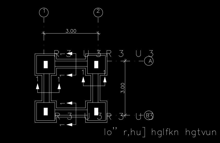 3x3m bedroom plan column cum foundation layout is given in this file. The distance between each foundation is 3m. For more details download the AutoCAD file.