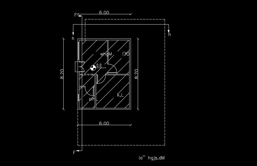 8x6m house plan is given in this AutoCAD drawing model. This is a single bhk house plan. The living room, master bedroom, kitchen, and common bathroom are available. For more details download the AutoCAD file for free from our website.