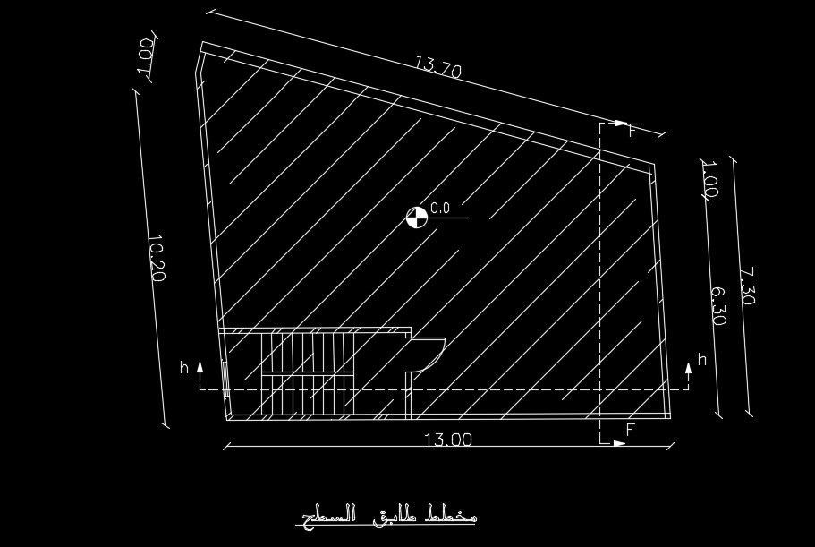 A front cut section view of the 14x10m house plan is given in this AutoCAD file