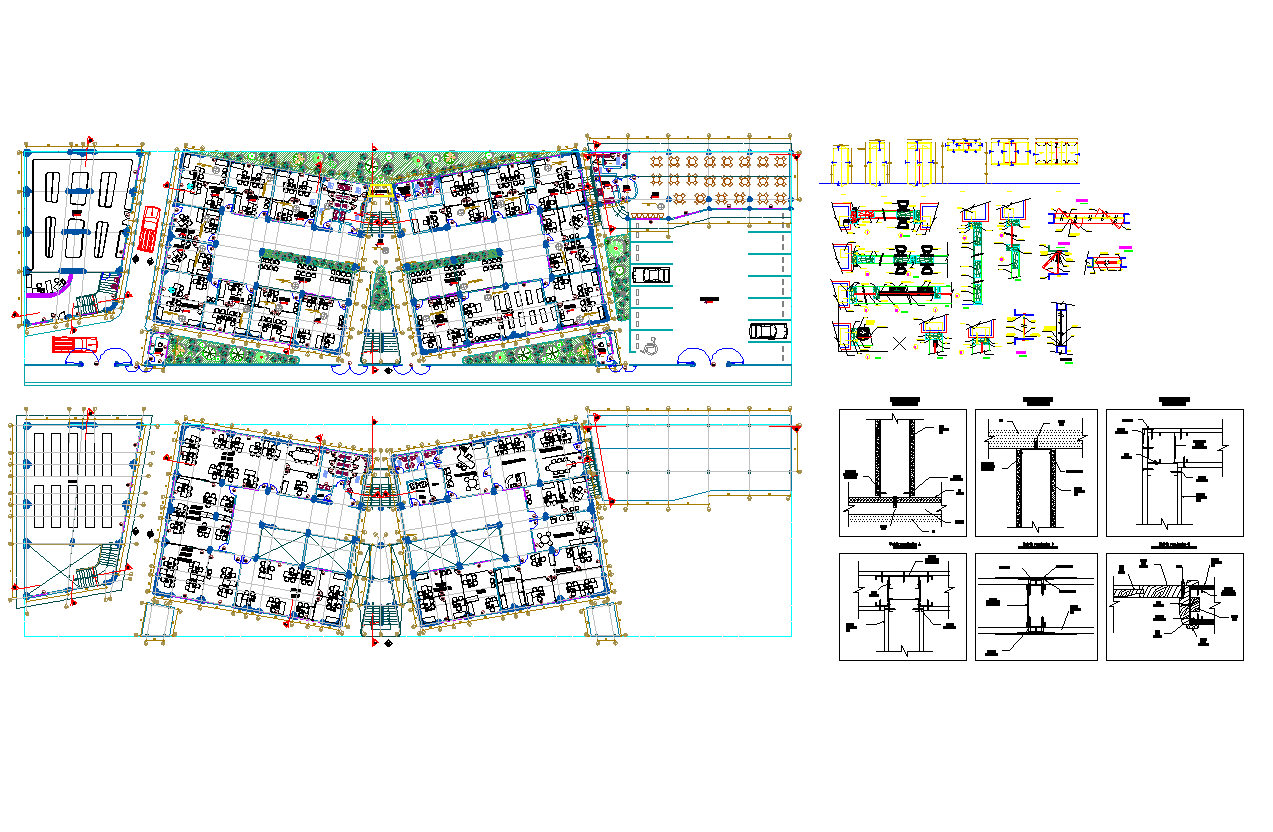 Institutional office Design in DWG file, WAITING ROOM, TREASURY, ADMINISTRATION, PENSIONS, PARKING LOT, Building detail