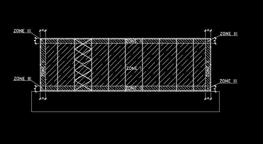 The front side of the 57x36m industrial plan of the wind zone I & III detail drawing is given in this AutoCAD model. For more details download the AutoCAD drawing model.