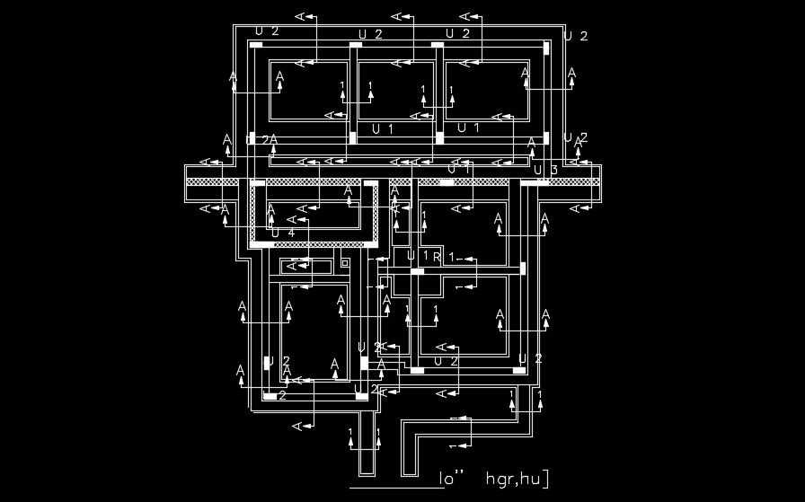 The foundation layout of the 15x20m house plan is given in this AutoCAD drawing model. This is G+ 1 house building. The living room, kitchen, master bedroom, family lounge, guest room, two kid’s room, bathroom with bath tub, and two common bathrooms are available. For more details download the AutoCAD drawing file for free.