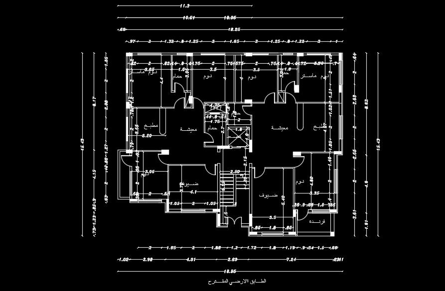 A column layout of the 18x15m house plan is given in this AutoCAD file. Two houses are available on this plan. The kitchen, living room, master bedroom with attached toilet, kid’s room, guest room, and common bathroom are available. For more details download the AutoCAD drawing file for free.